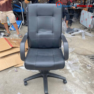 Mô tả: Ghế xoay văn phòng bọc da cao cấp, thiết kế sang trọng phù hợp cho giám đốc, trưởng phòng hoặc nhân viên văn phòng. Đệm ngồi dày dặn, tựa lưng cao giúp nâng đỡ cột sống và mang lại sự thoải mái khi ngồi lâu. Tay vịn nhựa chắc chắn, tạo điểm tựa vững vàng. Chân ghế nhựa cứng cáp, có bánh xe xoay linh hoạt giúp di chuyển dễ dàng. Cần gạt điều chỉnh độ cao linh hoạt theo nhu cầu sử dụng.