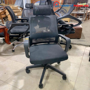 Mô tả: Ghế xoay văn phòng lưới đen thiết kế hiện đại, có tựa đầu giúp nâng đỡ cổ và giảm áp lực khi ngồi lâu. Phần lưng ghế bằng lưới thoáng khí, đệm ngồi êm ái, tay vịn chắc chắn. Chân ghế có bánh xe linh hoạt, phù hợp cho môi trường làm việc hoặc học tập.
