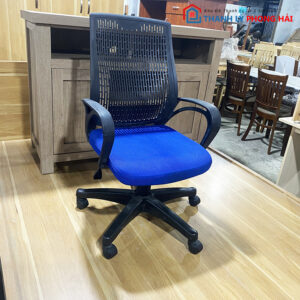 Mô tả: Ghế văn phòng cũ thuộc dòng ghế cao cấp thiết kế đơn giản nhưng tiện dụng, phù hợp cho làm việc tại nhà hoặc văn phòng. Phần tựa lưng bằng nhựa đục lỗ thông thoáng, hỗ trợ lưng hiệu quả khi ngồi lâu. Đệm ghế bọc vải êm ái, không gây nóng, dễ dàng vệ sinh. Chân ghế xoay linh hoạt, có bánh xe giúp di chuyển nhẹ nhàng trên mọi bề mặt.