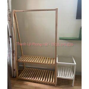 Mô tả: giá treo quần áo được làm từ gỗ có 2 tầng có thể dùng để giày để quần áo xếp hoặc các vật dụng cá nhân rất đẹp mắt. Màu sắc tự nhiên của gỗ tạo nên không gian cảm giác xanh mát và thân thiện.