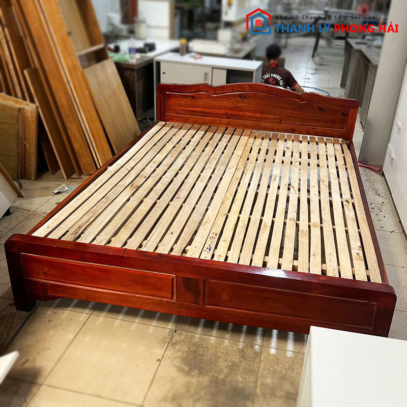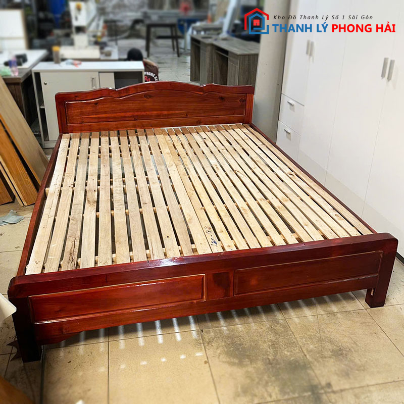 Giường Gỗ 1m6 Màu Nâu Đỏ Cũ – Đơn Giản, Thanh Lịch