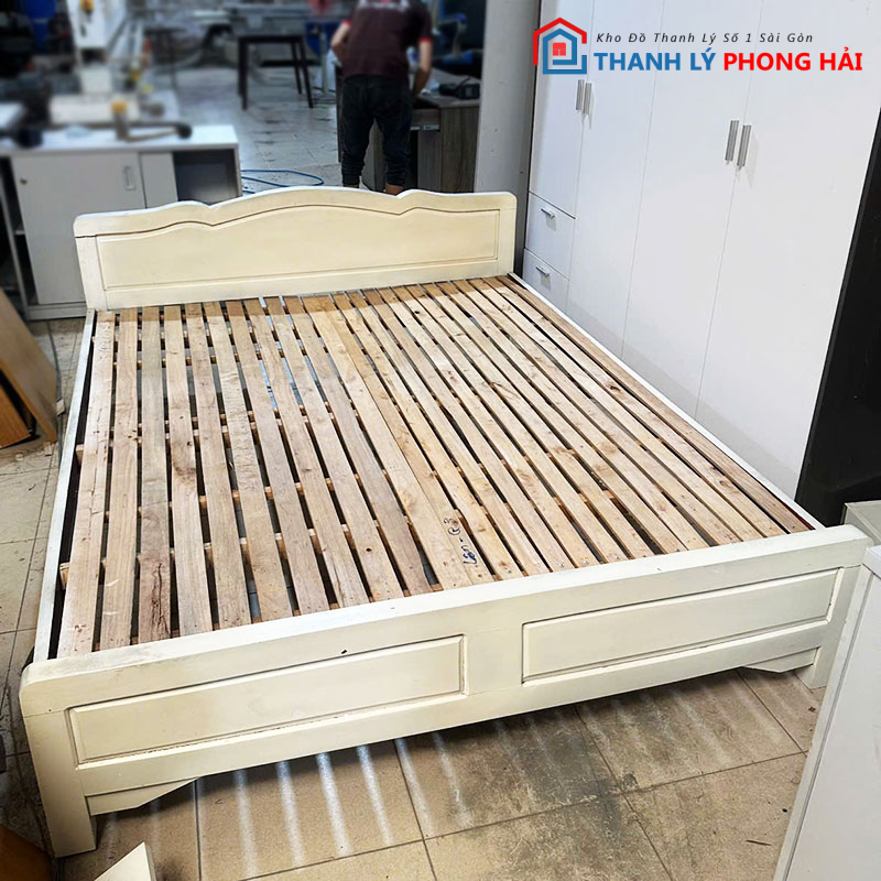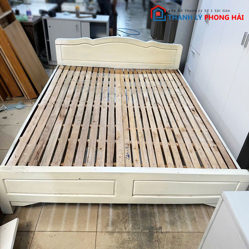 Giường gỗ màu sồi 1m6 đang có tại Thanh Lý Phong Hải. Khách có thể đến trực tiếp để xem hoặc liên hệ Zalo để giữ hàng. Kho còn nhiều loại giường gỗ, giường MDF, tủ quần áo và nệm các loại giá tốt mỗi ngày. Xem thêm tại danh mục “giường ngủ cũ“.