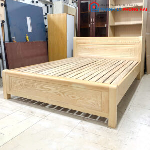 Mô tả: Giường ngủ gỗ đơn giản với thiết kế thanh lịch, màu sắc tự nhiên sáng, phù hợp với nhiều không gian phòng ngủ. Phần đầu giường có họa tiết chạm khắc nhẹ nhàng, tạo điểm nhấn. Mặt giường là những thanh gỗ xếp đều, đảm bảo độ chắc chắn và thoáng khí. Khung giường vững chãi, các cạnh bo tròn nhẹ, mang lại sự an toàn và thoải mái khi sử dụng. Sản phẩm phù hợp cho những ai đang tìm kiếm một chiếc giường gỗ với thiết kế cơ bản, sử dụng lâu dài và dễ phối hợp với nội thất xung quanh.