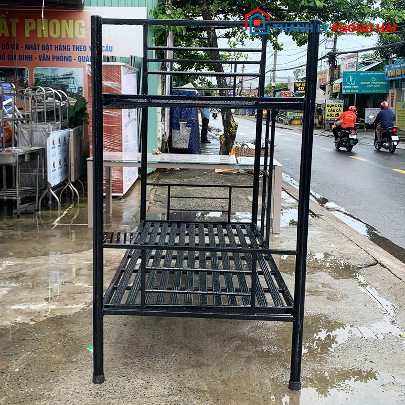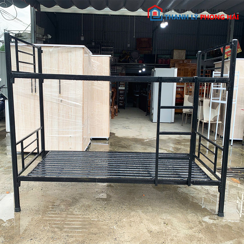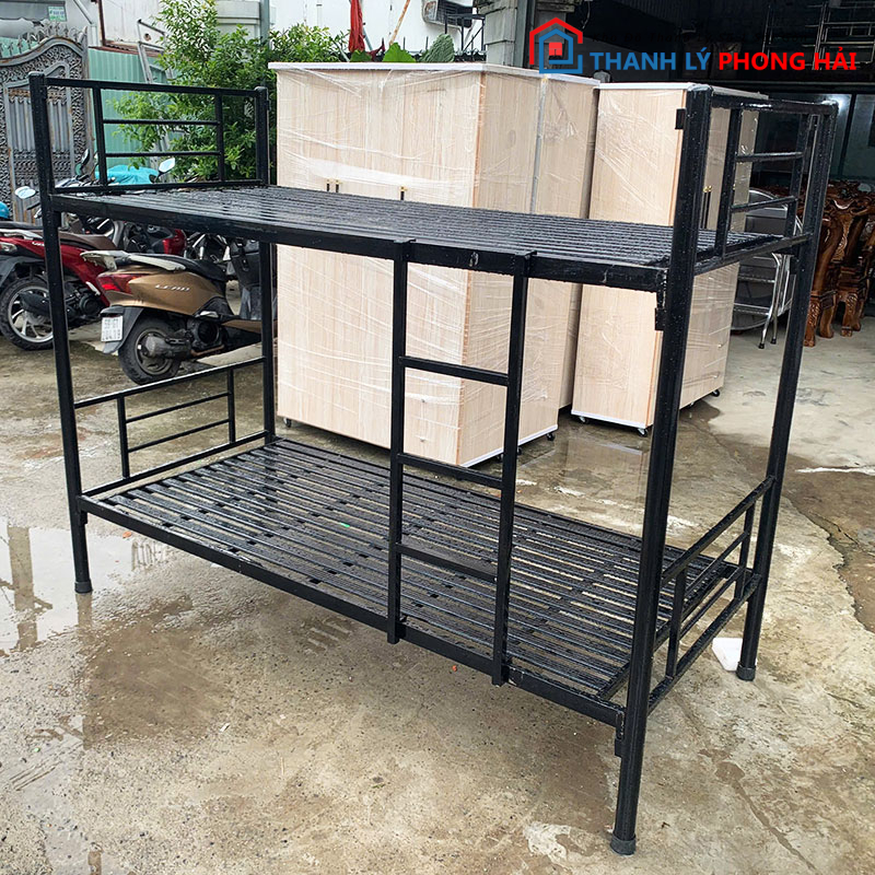Giường Sắt 2 Tầng 1m Màu Đen Cũ