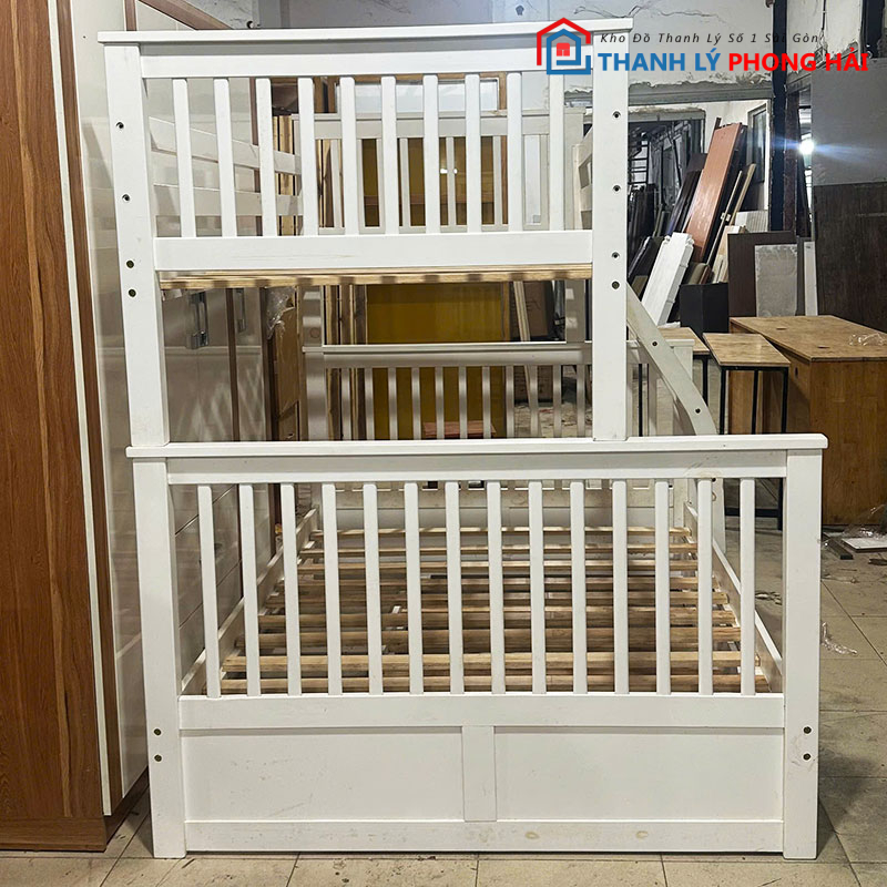 Giường Tầng Gỗ 1m4 Cũ Màu Trắng – Thiết Kế Chắc Chắn