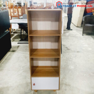 Mô tả: Kệ gỗ nhỏ gọn với thiết kế đơn giản, gồm 4 ngăn đựng tiện lợi, có thể sử dụng để hồ sơ, sách hoặc vật dụng trang trí. Phía dưới có ngăn tủ kín nhỏ giúp bảo quản đồ dùng gọn gàng và an toàn.