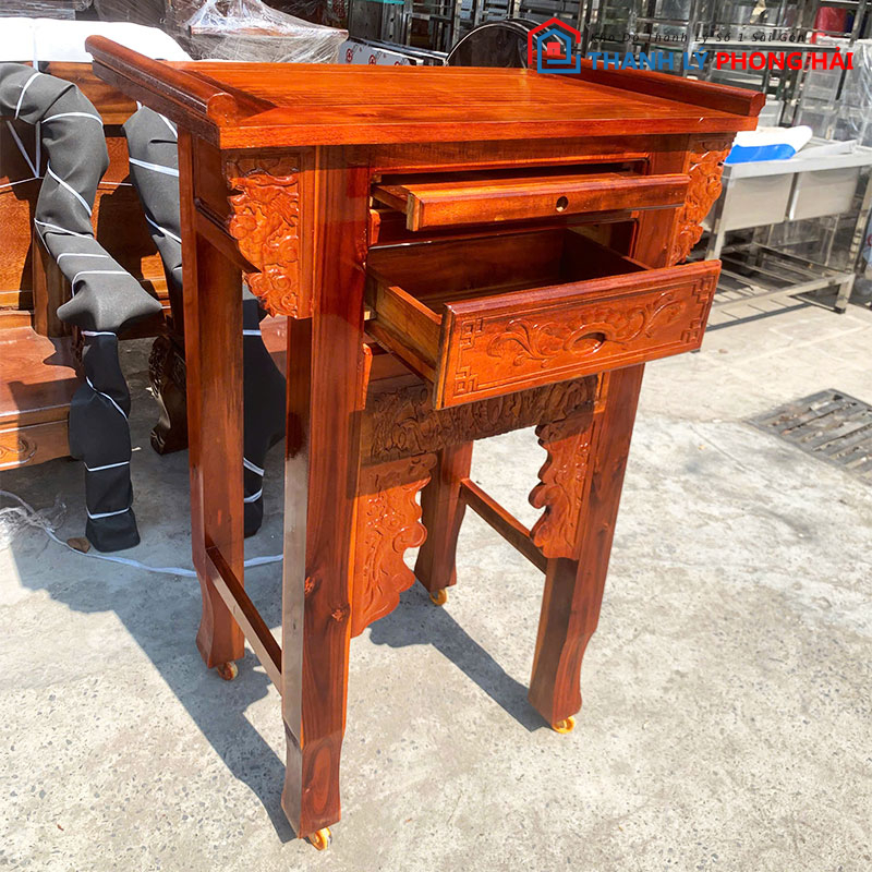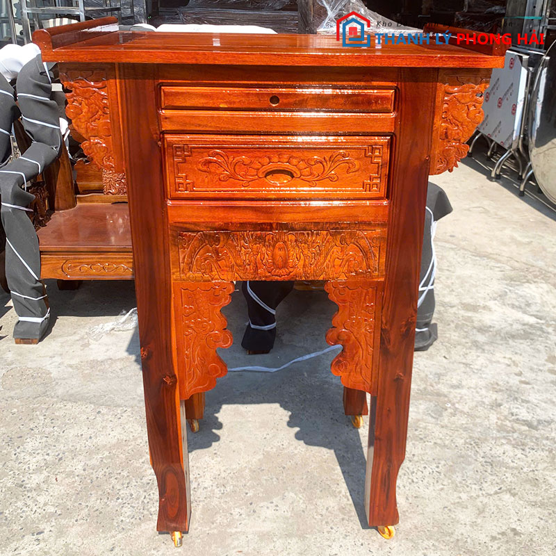 Mẫu kệ thờ thanh lý 1 tầng có ngăn kéo phù hợp cho anh chị cần bàn thờ gọn, tiện và dễ bài trí. Anh chị có thể ghé kho Phong Hải xem trực tiếp hoặc nhắn Zalo để được gửi thêm hình thực tế và giữ kệ sớm. Xem thêm các mẫu kệ thờ thanh lý tại đây!