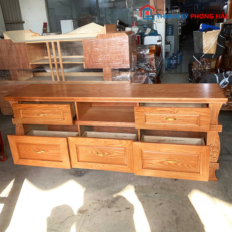 Mẫu kệ tivi gỗ 5 ngăn phù hợp cho anh chị cần kệ rộng, chứa đồ nhiều và dễ phối nội thất phòng khách. Anh chị có thể ghé kho Phong Hải xem trực tiếp hoặc liên hệ Zalo để được gửi hình thực tế và giữ kệ nhanh. Tham khảo thêm các mẫu khác trong danh mục “kệ tivi thanh lý“!