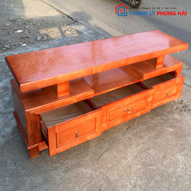 Kệ Tivi Gỗ Tự Nhiên 1m39 Nhiều Ngăn Mới 99% – Kiểu Dáng Cổ Điển, Sang Trọng