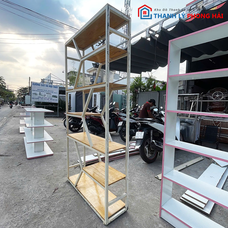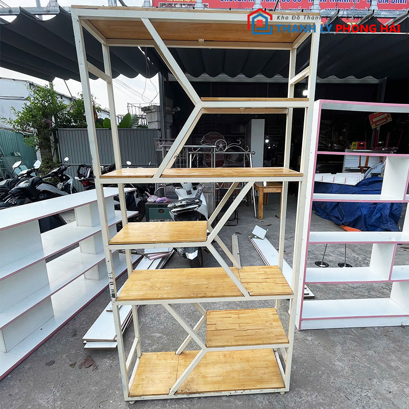 Kệ dễ kê sát tường hoặc đặt giữa không gian, vừa trưng bày sản phẩm vừa tạo điểm nhấn trang trí cho cửa hàng. Kho Thanh Lý Phong Hải còn nhiều mẫu khác, tham khảo trong danh mục “kệ trưng bày cũ“!