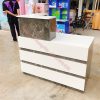 Mô tả: Quầy được thiết kế màu trắng nâu độc đáo, đẹp mắt, kết cấu chữ I tối giản nhưng không kém phần sang trọng, hiện đại. Có thể dùng làm quầy lễ tân, quầy thu ngân đều được.