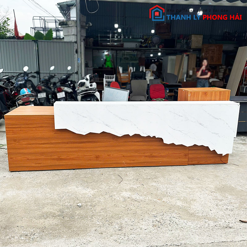 Quầy Lễ Tân 3m Gỗ MDF Cũ – Kiểu Dáng Độc Đáo, Phối Vân Đá Sang Trọng