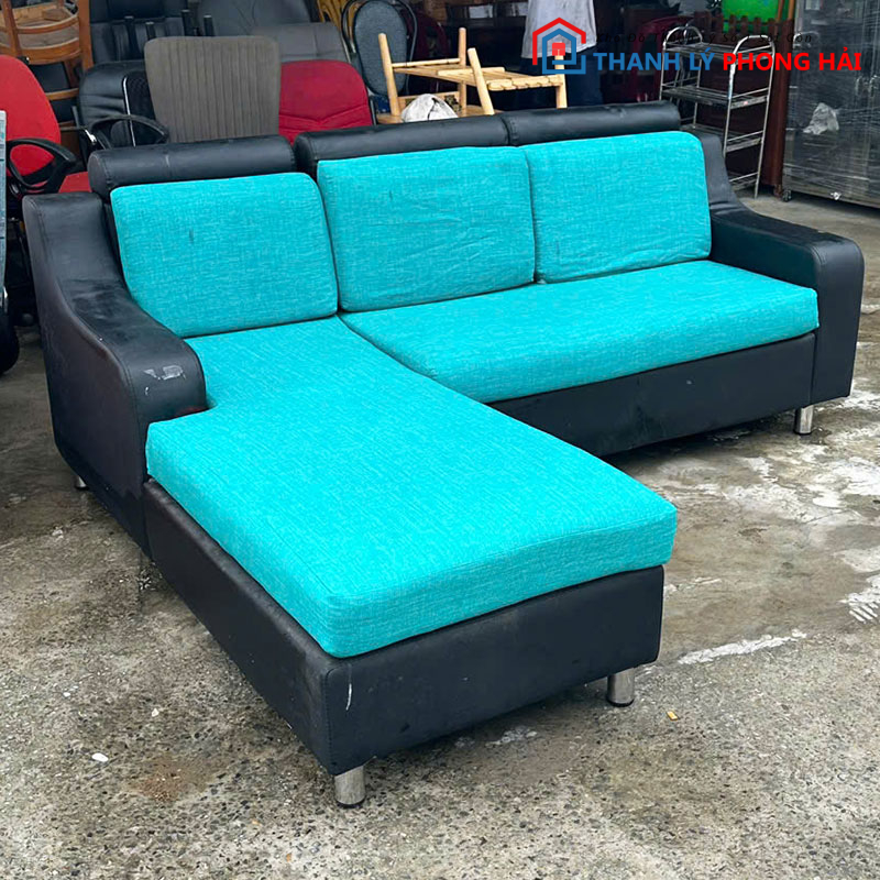 Sofa góc L 2m cũ thiết kế hiện đại, phối màu xanh đen sang trọng, phù hợp với nhiều không gian như phòng khách, văn phòng hay quán cafe. Đệm ngồi dày, êm và không xẹp lún, cho cảm giác thoải mái khi sử dụng. Tựa lưng cao, khung gỗ chắc chắn, chân nhựa bền bỉ giúp ghế vững vàng. Kiểu dáng góc L rộng rãi, dễ bố trí, thuận tiện cho việc nghỉ ngơi hoặc tiếp khách.