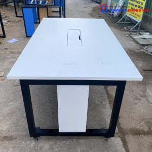 Thanh lý bàn họp chân sắt có vách ngăn 1m8 trắng cũ giá siêu rẻ