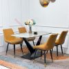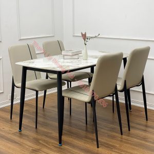 Chất liệu: mặt đá Ceramic, chân sắt sơn tĩnh điện, ghế nệm bọc da PU