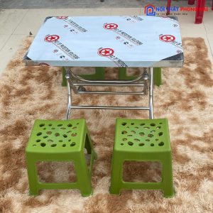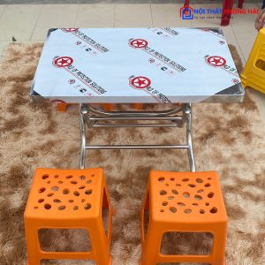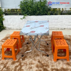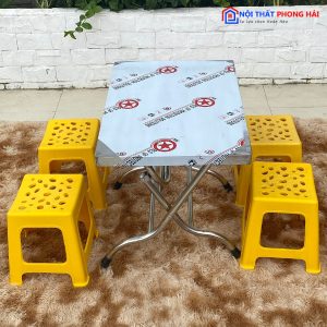 Giá Thanh Lý: Bộ: 470.000đ (Ghế: 40.000đ/1c ; Bàn inox thấp 50x80cm: 310.000đ)