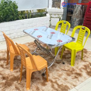 Thanh lý bộ bàn ăn ghế nhựa vàng cam bàn inox giá rẻ