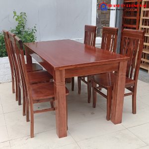 Mô tả: Bộ bàn ăn với kiểu dáng cổ điển, được làm từ chất liệu gỗ xoan cao cấp nên cực kỳ cứng cáp và bền bỉ, chống mối mọt và ẩm móc. Màu sắc trầm ấm hài hòa, kết hợp được với cực kỳ nhiều phong cách nội thất khác nhau.