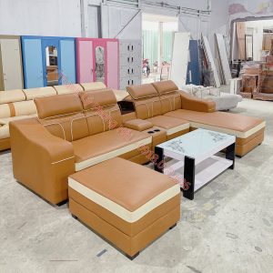 Mô tả: Bộ sofa góc chữ L thiết kế dành riêng cho không gian phòng khách sang trọng, hiện đại. Sản phẩm lót nệm dày cho cảm giác ngồi, nằm thư giãn dễ chịu, tích hợp ngăn, kệ đựng cốc nước rất tiện dụng.