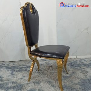 Mô tả: Mẫu ghế với kiểu dáng sang trọng, thời thượng và quý tộc. Phần khung được làm từ chất liệu sắt chống rỉ cứng cáp và chắc chắn được phủ 1 lớp sơn vàng óng đẹp mặt và thu hút, cùng nệm bọc da simili cao cấp mang lại cảm giác ngồi thoải mái và dễ chịu. Tuy đã qua sử dụng nhưng ghế vẫn còn cực kỳ mới và đẹp, không hư hại hay hỏng, mua về là sử dụng được ngay.