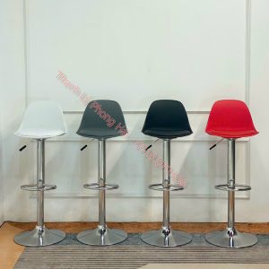 Mô tả: ghế bar chân inox, có vòng tròn giữa chân ghế dùng để gác chân khi ngồi. Đi kèm là pít-tông có thể nâng lên hạ xuống tùy theo chiều cao của mỗi cá nhân. Mẫu ghế bar này có nhiều màu cho quý khách hàng dễ lựa chọn.