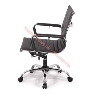 Mô tả: Ghế xoay làm việc da lưng thấp màu đen sang trọng. Chân ghế sắt mạ crom làm rất chắc chắn với đệm ngồi êm ái giúp bạn thả lỏng cơ thể khi làm việc. Đặc biệt, chân ghế xoay có thể giúp bạn dễ dàng di chuyển trong phòng làm việc.