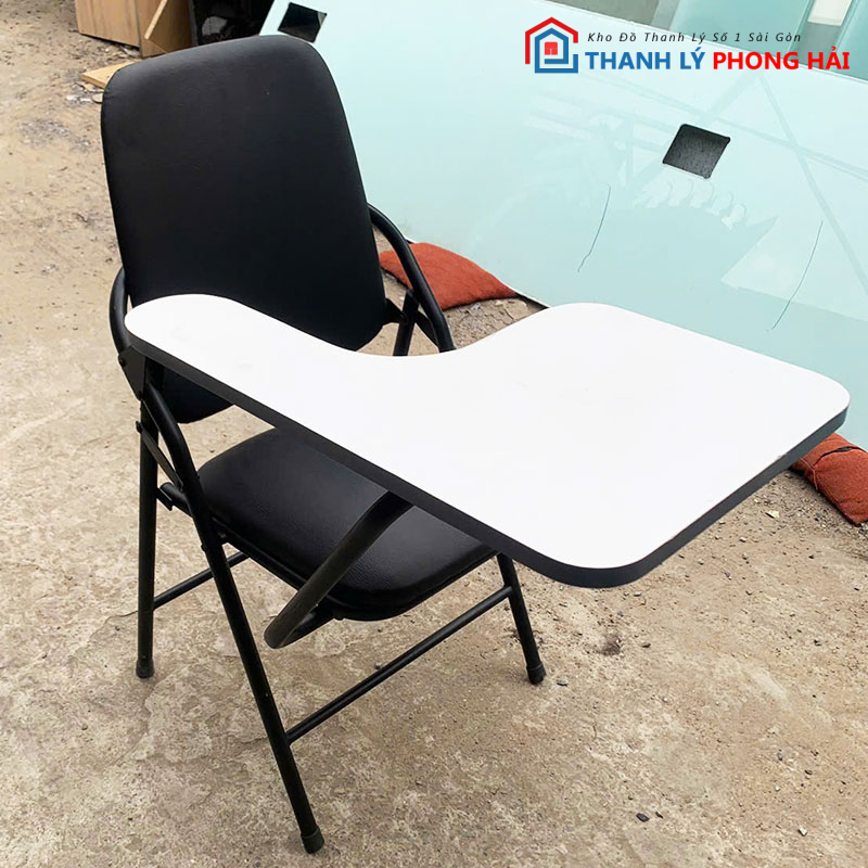 Mô tả: Mẫu ghế xếp liền bàn hiện đại và tiện lợi. Phần khung ghế được làm từ chất liệu inox chắc chắn cùng phần nệm bọc da simili mang lại cảm giác ngồi êm ái và thoải mái, thích hợp sử dụng cho trường học, văn phòng, cơ quan,…. Tuy đã qua sử dụng nhưng ghế vẫn còn rất đẹp và mới, không hư hại hay hỏng hóc, mua về là có thể sử dụng ngay.