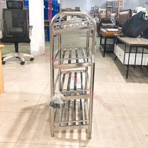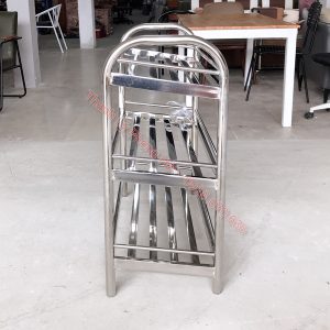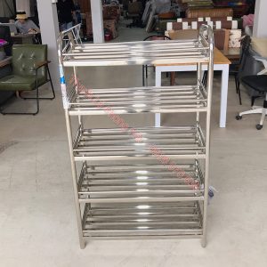 Mô tả: Kệ dép Inox gồm 3-4-5 tầng, với chất liệu inox chắc chắn, khả năng chịu lực tốt, dễ dàng vệ sinh và di chuyển đến nhiều vị trí khác nhau. Phù hợp sử dụng tại nhà, khu ký túc xá, nhà trọ, chung cư, căn hộ,…