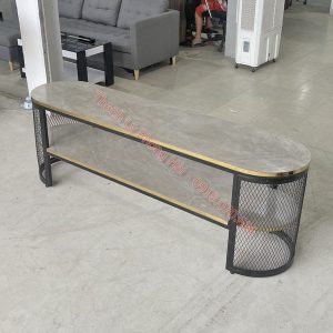 Mô tả: Mẫu kệ tivi bo cong 2 cạnh gồm 2 tầng, phù hợp với nhiều thiết kế nội thất khác nhau. Với khung sắt sơn tĩnh điện kết hợp mặt vân đá độc đáo, được nhiều khách hàng lựa chọn sử dụng.