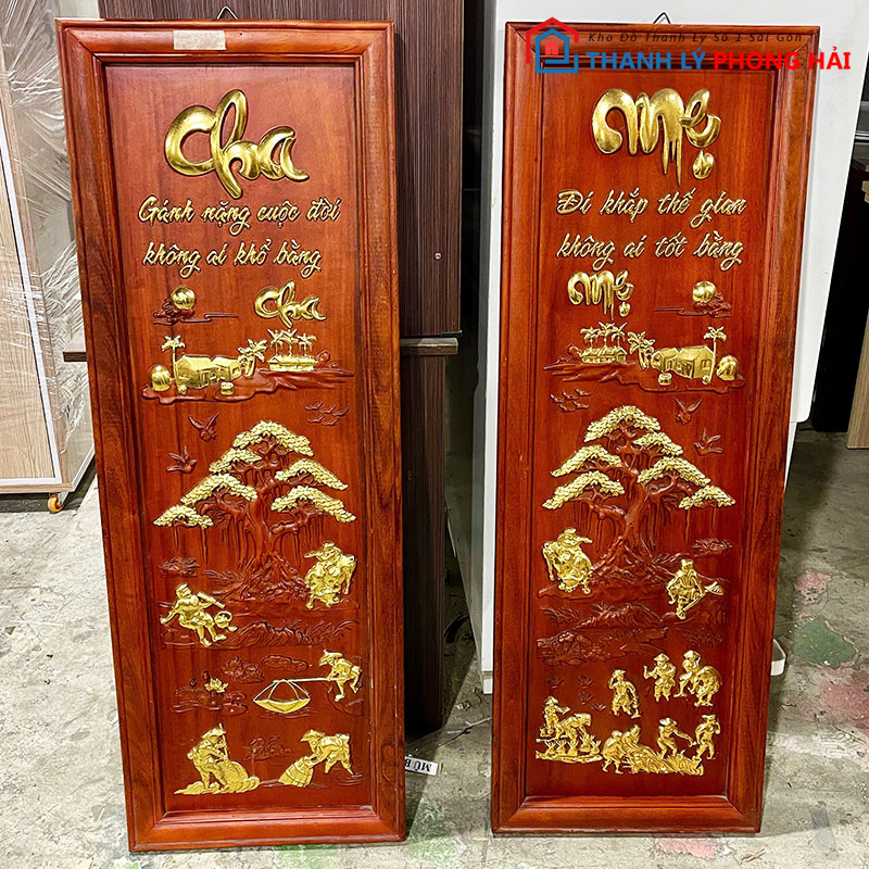 Tranh Gỗ Treo Tường Chữ Cha Mẹ Bọc Vàng Mới 99%