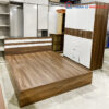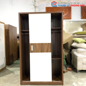 Mô tả: Tủ quần áo gỗ công nghiệp cũ với thiết kế cửa lùa hiện đại, giúp tiết kiệm không gian. Tủ có màu sắc nâu kết hợp trắng trang nhã, phù hợp cho nhiều loại không gian phòng ngủ.