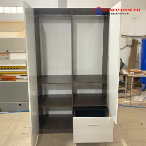 Mô tả: Mẫu tủ quần áo với thiết kế hiện đại, đơn giản và cực kỳ tinh tế, được làm hoàn toàn bằng gỗ MDF cao cấp nên tủ cực kỳ cứng cáp và chắc chắn, với 2 cánh và 1 ngăn kéo tiện lợi, phía trong được tích hợp 2 ngăn treo quần áo cùng nhiều kệ giúp tối ưu việc lưu trữ đồ đạc quần áo được tiện lợi, ngăn nắp và dễ dàng hơn. Hiện nay chúng tôi cũng nhận gia công và thiết kế các mẫu tủ quần áo tương tự với mức giá thấp nhất thị trường hiện nay.