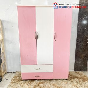 Tủ Quần Áo Nhựa 3 Cánh Hồng Trắng Cũ