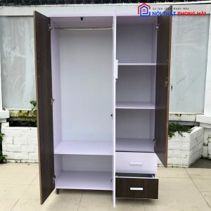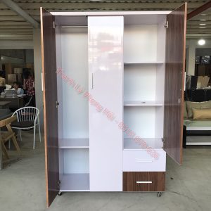 Mô tả: Tủ quần áo nhựa gồm 3 cánh và 2 ngăn kéo, có thanh treo đồ tiện lợi. Màu trắng nâu đan xen tạo nên sự độc đáo, bắt mắt. Khách hàng có thể mua sử dụng tại nhà, chung cư hay căn hộ đều được.