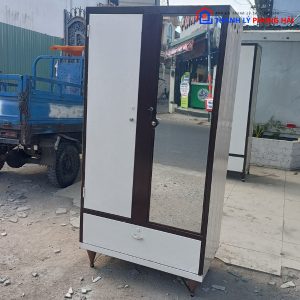 Mô tả: Mẫu tủ quần áo với thiết kế hiện đại và sang trọng. Được làm từ chất liệu sắt cứng cáp và chắc chắn độ bền cao, với thiết kế 2 cánh phía trong có nhiều ngăn kệ giúp tối ưu việc lưu trữ đồ đạc quần áo, mặt trước có gương soi tiện lợi. Tuy đã qua sử dụng nhưng về chất lượng tủ còn rất đẹp và mới, không bị hư hại hay hỏng hóc, mua về là có thể sử dụng ngay.