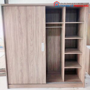 Mô tả: Tủ quần áo cửa lùa với thiết kế tinh tế và hiện đại. Tủ được làm từ gỗ công nghiệp phủ melamine màu nâu tự nhiên, tạo cảm giác ấm áp và sang trọng. Tủ có hai cánh cửa lùa giúp tiết kiệm không gian, bên trong có nhiều ngăn và kệ tiện dụng để quần áo và phụ kiện. Sản phẩm phù hợp với nhiều phong cách nội thất và đặc biệt lý tưởng cho các không gian nhỏ gọn.