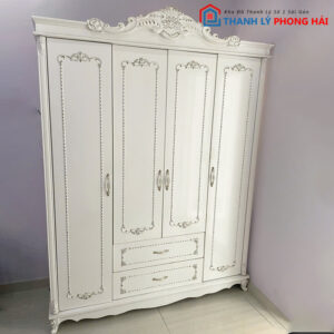 Thanh Lý Tủ Áo Tân Cổ Điển 4 Cánh Cũ Màu Trắng