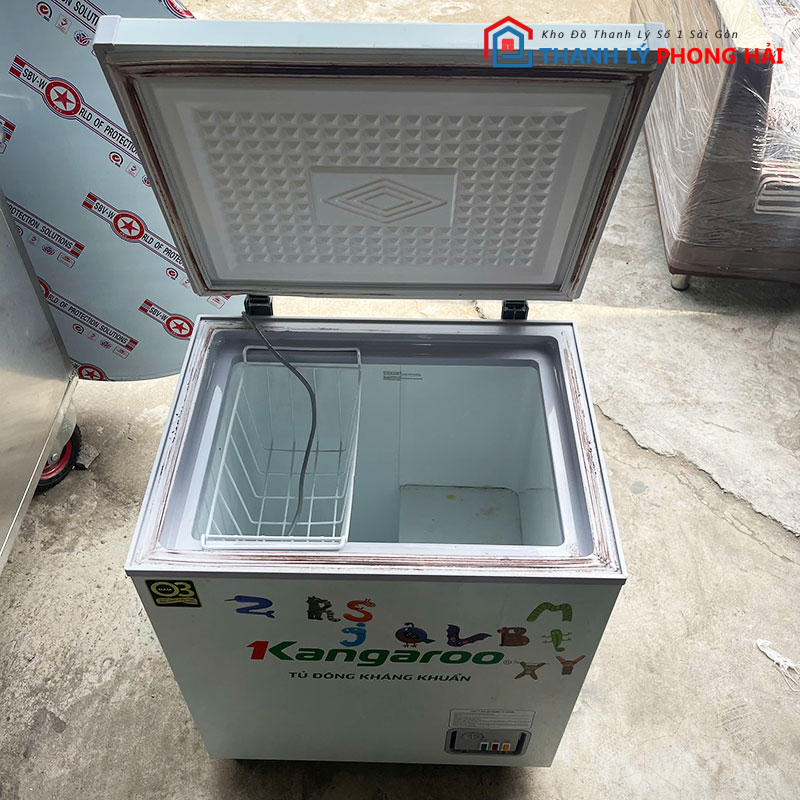 Mẫu tủ đông Kangaroo cũ có thiết kế nhỏ gọn, phù hợp sử dụng cho gia đình, quán ăn, quán nhậu, tiệm tạp hóa hoặc cửa hàng kinh doanh thực phẩm. Dung tích vừa phải, đáp ứng tốt nhu cầu trữ đông thịt cá, hải sản, đồ đông lạnh trong sinh hoạt và buôn bán hằng ngày.