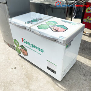 Mô tả: Tủ mát Kangaroo kích thước vừa phải, phù hợp để bảo quản thực phẩm, nước uống cho gia đình hoặc cửa hàng nhỏ. Thiết kế 2 ngăn với nắp mở tiện lợi, bên trong có kính chắn giúp giữ lạnh hiệu quả. Máy vận hành êm ái, tiết kiệm điện năng, khả năng kháng khuẩn, đảm bảo giữ thực phẩm tươi lâu mà không bị khô.