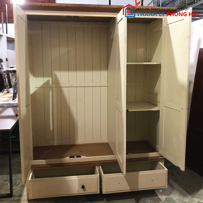 Thanh Lý Phong Hải cung cấp nhiều mẫu tủ quần áo cũ, tủ kệ và nội thất phòng ngủ với giá thanh lý hợp lý. Ngoài tủ 3 cánh kèm hộc kéo, bạn có thể tham khảo thêm các mẫu tủ 2 cánh, 4 cánh, bàn trang điểm, giường ngủ và các sản phẩm nội thất khác trong cùng danh mục. Liên hệ qua Zalo hoặc ghé trực tiếp kho để xem sản phẩm và nhận tư vấn chi tiết.
