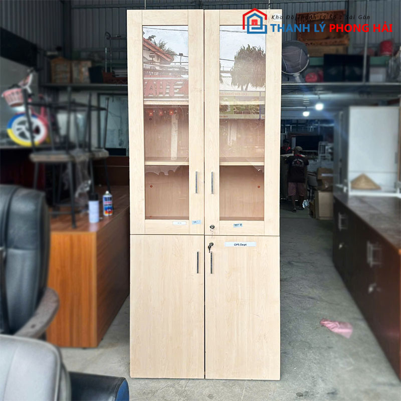 Tủ Hồ Sơ 80cm 4 Cánh Cũ – Thiết Kế 2 Cánh Kính Trên