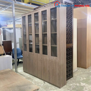 Mô tả: Tủ hồ sơ cũ thiết kế lớn, chia thành nhiều ngăn giúp sắp xếp tài liệu gọn gàng, dễ tìm kiếm. Phần trên là cửa kính trong suốt, thuận tiện quan sát bên trong, phù hợp để trưng bày hồ sơ, tài liệu quan trọng. Phần dưới có cánh tủ kín, bảo vệ vật dụng khỏi bụi bẩn. Tủ làm từ gỗ công nghiệp vân gỗ sang trọng, kết cấu chắc chắn, thích hợp sử dụng cho văn phòng, công ty hoặc cửa hàng.