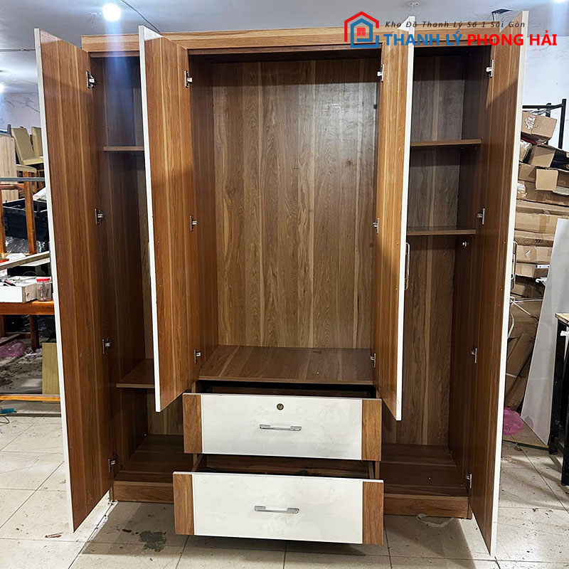 Tủ Quần Áo 1m6 4 Cánh Màu Nâu Trầm Cũ – Công Năng Rộng Rãi