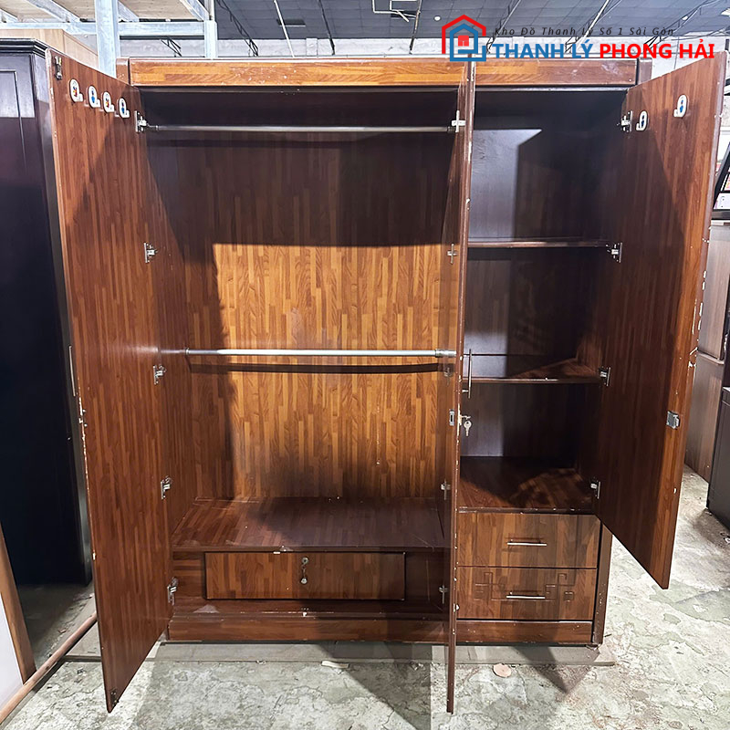 Thanh Lý Phong Hải luôn có nhiều mẫu tủ quần áo gỗ công nghiệp cũ đa dạng kích thước và màu sắc. Mẫu tủ 1m6 x 2m này là lựa chọn hoàn hảo cho không gian phòng ngủ cần sự gọn gàng, hiện đại mà vẫn tiết kiệm chi phí. Ngoài ra, cửa hàng còn có tủ gỗ xoan đào, tủ cửa lùa, tủ 2 cánh, 4 cánh và nhiều loại nội thất khác với giá thanh lý cực tốt. Hãy đến kho xem trực tiếp hoặc liên hệ qua Zalo, điện thoại để được tư vấn và giữ mẫu nhanh nhất.