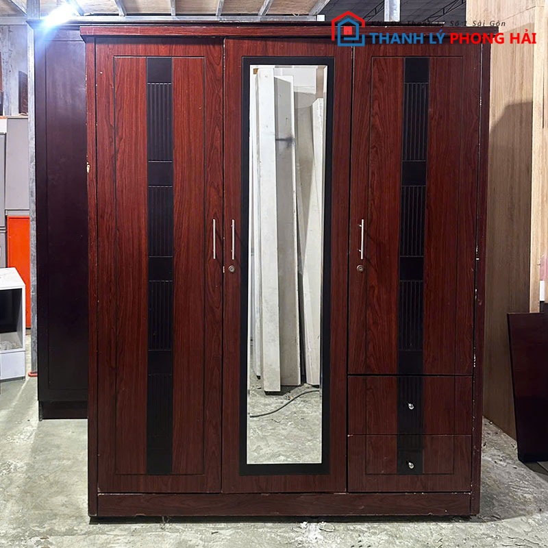 Tủ Quần Áo 3 Cánh 1m6 Có Gương Giữa Cũ – Rộng Rãi, Tiện Dụng