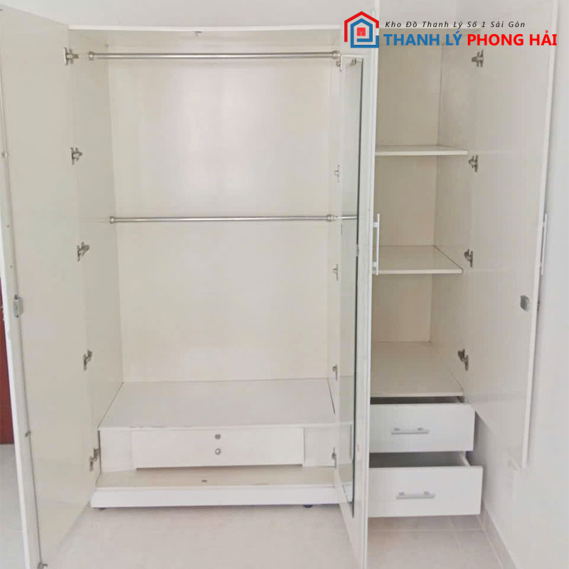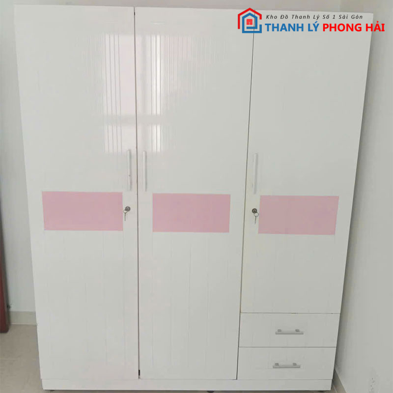 Tủ Quần Áo 3 Cánh 1m6 Màu Trắng Phối Hồng Cũ – Tủ Kèm Hộc Tiện Lợi