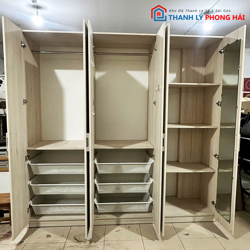 Tủ quần áo này không chỉ giúp bạn sắp xếp đồ đạc ngăn nắp mà còn mang lại vẻ đẹp sang trọng cho không gian sống của bạn. Liên hệ với chúng tôi qua Zalo hoặc đến kho để xem và mua sản phẩm nhanh chóng. Xem thêm nhiều mẫu tủ quần áo cũ tại đây!