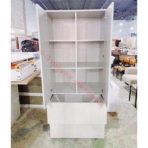 Mô tả: Tủ quần áo được làm từ gỗ công nghiệp 2 cánh bên trong có 6 ngăn để xếp quần áo hoặc chăn gối, bên dưới có ngăn kéo. Tủ được thiết kế màu trắng đơn giản, sang trọng.