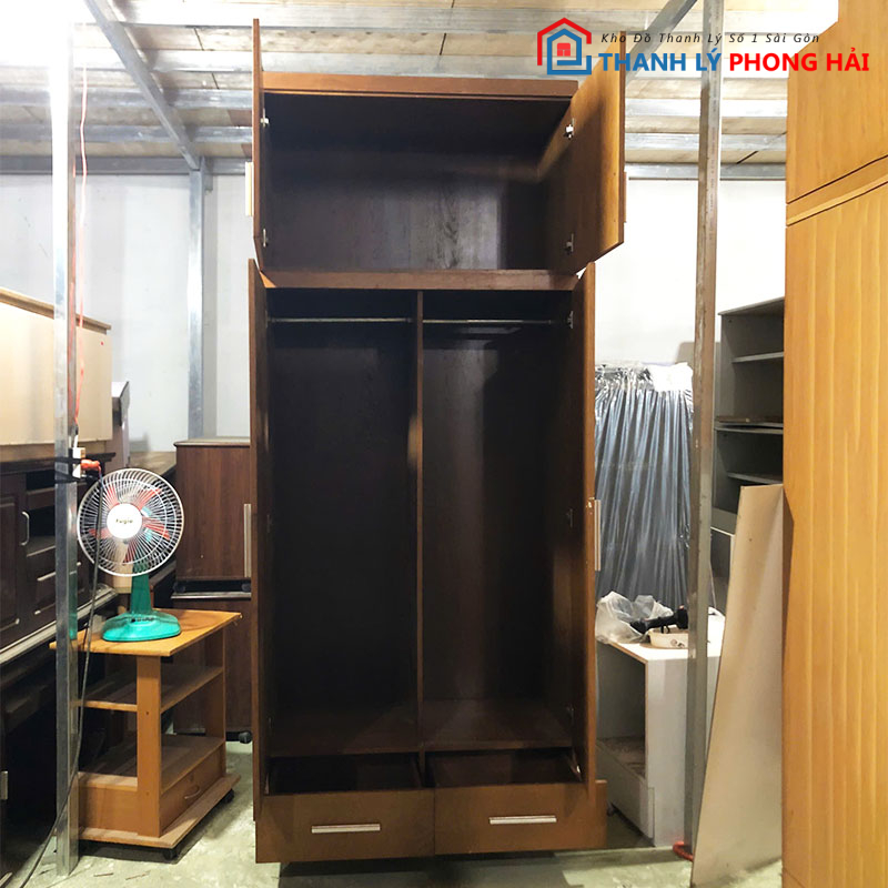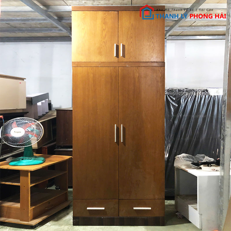 Tủ quần áo 4 cánh, với 2 cánh nhỏ phía trên và 2 cánh lớn phía dưới là giải pháp lưu trữ hiệu quả cho phòng ngủ. Tủ đi kèm 2 hộc kéo, thuận tiện để cất giữ đồ lót, phụ kiện hoặc các vật dụng nhỏ khác. Hàng cũ nhưng vẫn còn chắc chắn, đảm bảo khả năng sử dụng lâu dài. Thiết kế 4 cánh giúp phân chia các khu vực lưu trữ, dễ dàng sắp xếp quần áo theo từng loại, từ áo sơ mi, quần, váy đến chăn gối nhỏ.