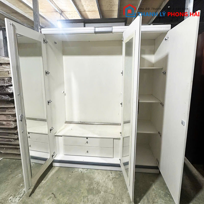 Anh chị có thể ghé kho Thanh Lý Phong Hải xem trực tiếp sản phẩm hoặc nhắn Zalo để được gửi thêm hình và video chi tiết. Hàng có sẵn, hỗ trợ giao tận nơi toàn TP.HCM! Xem thêm nhiều mẫu hơn trong danh mục “tủ quần áo cũ“!